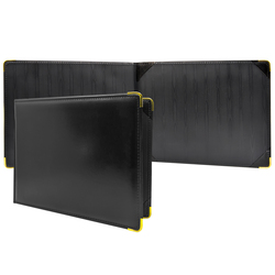 USA Made! An elegant way to display and showcase accomplishments. This Diploma Cover features a comfortable, padded vinyl material with decorative metal accents to protect the corners. Holds 11" x 8.5" landscape diplomas or achievement certificates. Includes Clear Protective Acetate and Gold Metal Corners.